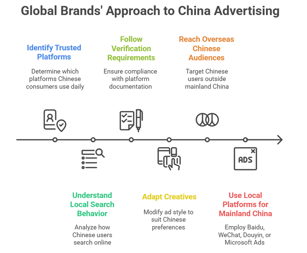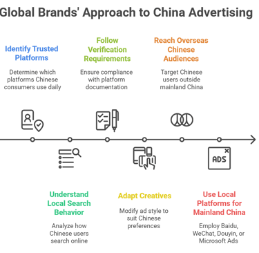 Microsoft Ads operate in China through local partnerships. For details, see Microsoft Ads in China for global marketers and how to combine them with LinkedIn targeting for B2B campaigns.
